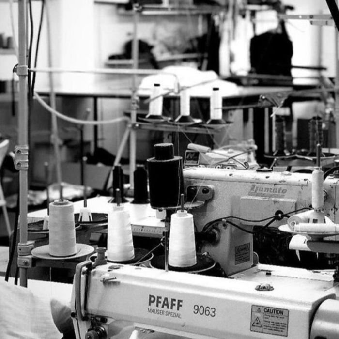 Hand-stitched garments with canvas construction